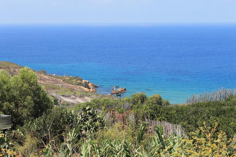 Keywords: coast gozo mediterranean trees sea beach ocean blue green landscape