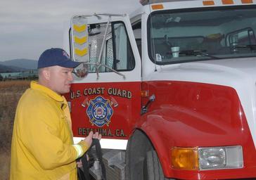 | Keywords: Coast Guard Training Center Petaluma Fights Summit Fire DVIDS1087341.jpg en SANTA CRUZ Calif May 25 2008 Chad Davis captain and civilian member of the firefighting team at Coast Guard Training Center Petaluma prepares for another day at the Summit fire in the Santa Cruz mountains Davis and his team secured hot sports during the day and removed fire hazards away from homes which were spared by the blaze His team was part of the Sonoma County Strike Team which joined more than 3000 firefighters from throughout California to battle the fire that destroyed more than 4200 acres Coast Guard Photo by PA1 Alan Haraf District Eleven Public Affairs 2008-05-25 Chief Petty Officer Alan Haraf https //www dvidshub net/image/1087341 1087341 2013-12-11 23 02 SANTA CRUZ CA US PD-USGov Firefighting training Images from DoD uploaded by Fæ |
