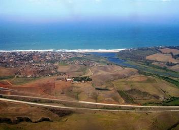 Keywords: coast line sea sky earth blue aerial river mouth white waves landmarks