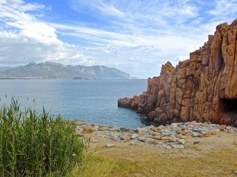 Keywords: coast rocks shore seaside red arbatax sardinia seashore scenic seascape colorful mediterranean coastline