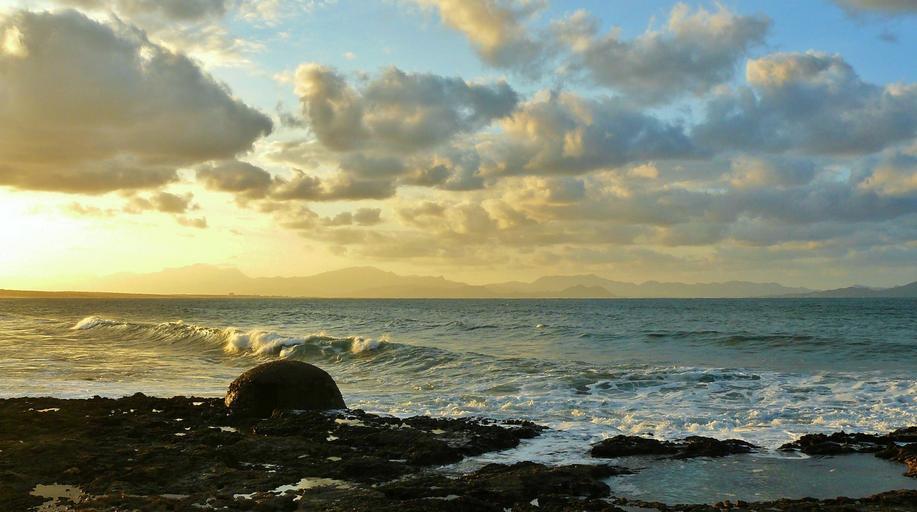 Keywords: coast sea rocky coast surf beach mediterranean steinig island view nature clouds sky water wave wide mood rest recovery leisure holiday travel mallorca spain sunbeam cloud formations light lighting landscape balearic islands south rock