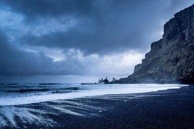 Keywords: coast shore cliffs rocks beach craggy mountains bluff vertical steep water ocean sea nature wild waves dark atmospheric