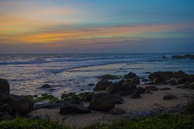 Keywords: coast shore stones rocks beach ocean sea evening sunset twilight dusk scenic atmospheric summer water nature seascape seaside