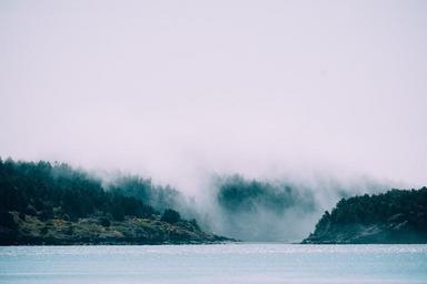 Keywords: coast shore water sea ocean fog clouds mist nature rocks bay cove wilderness coastline seascape seaside