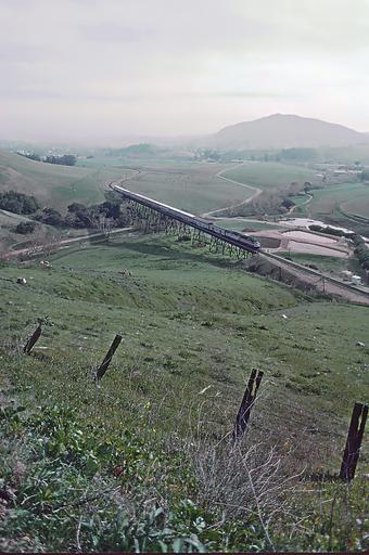 | Keywords: amtrak outdoor landscape grassland field hill Roger Puta located himself on the inside of the upper leg of the horseshoe curve above San Luis Obispo one day in March 1985. He shot a freight train, which I'll post and the Coast Starlight, both uphill trains. Amtrak 292 and a sister F40PH were in charge of the Coast Starlight that day. First he caught it on the trestle on the end of the lower leg of the horseshoe a little north of San Louis Obispo. Then he squeezed off three shots after it rounded the curve and was climbing toward him. It's all up hill since before the trestle and well beyond where he was standing. Roger Puta located himself on the inside of the upper leg of the horseshoe curve above San Luis Obispo one day in March 1985. He shot a freight train, which I'll post and the Coast Starlight, both uphill trains. Amtrak 292 and a sister F40PH were in charge of the Coast Starlight that day. First he caught it on the trestle on the end of the lower leg of the horseshoe a little north of San Louis Obispo. Then he squeezed off three shots after it rounded the curve and was climbing toward him. It's all up hill since before the trestle and well beyond where he was standing. Roger Puta located himself on the inside of the upper leg of the horseshoe curve above San Luis Obispo one day in March 1985. He shot a freight train, which I'll post and the Coast Starlight, both uphill trains.