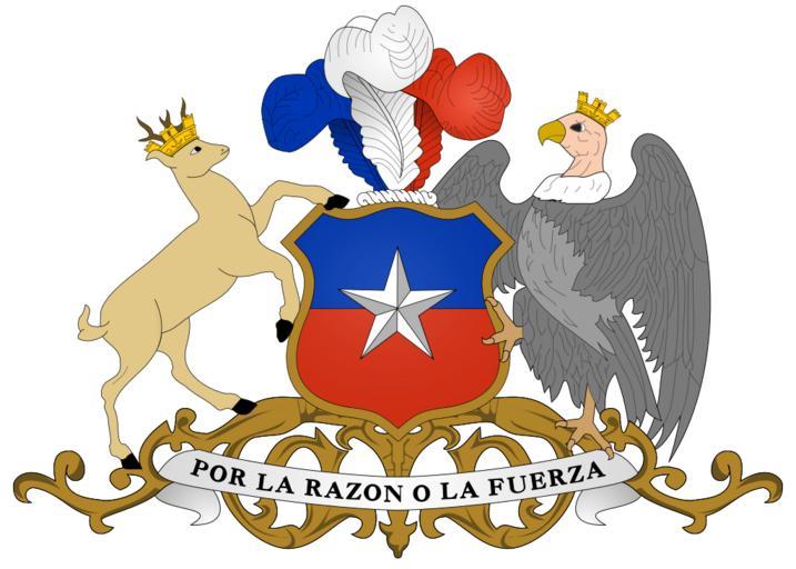 | Keywords: Coat of arms of Chile 3D.svg blazon of cs Znak Chilské republiky Republik Chile Republic of Chile República de Chile es El Escudo de Armas presenta una estrella de plata de cinco picos al centro de un campo cortado azul turquí el superior y rojo el inferior y su forma es la fijada por el modelo oficial aprobado por decreto de Guerra N° 2 271 de 4 de septiembre de 1920 conforme a la ley y el cual además tiene por timbre un plumaje tricolor de azul turquí blanco y rojo; por soportes un huemul rampante a su derecha y un cóndor a su izquierda en la posición que fija ese modelo coronado cada uno de estos animales con una corona naval de oro; y por base un encaracolado cruzado por una cinta con el lema Por la razón o la fuerza todo en conformidad al referido modelo 2006-09-03 B1mbo own Official coat of arms PD-Chile insignia other versions 245px 245px SVG coats of arms of Chile Coats of arms of Chile Condors in supporters Huemuls in supporters Naval crowns SVG coats of arms in 3d Chile |