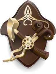 Keywords: coat of arms decoration interior home wooden vintage rustic scissor hammer panel emblem crest