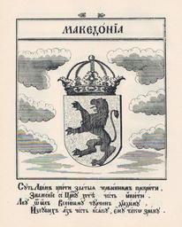 | Keywords: Coat of Arms of Macedonia from Stemmatographia by Hristofor Zhefarovich (1741).jpg Hristofor Zhefarovich first published in Vienna in 1741 mk Г бот на акедонија од Стематог афија од Х истофо Жефа ови п в пат објавена во Виена во 1741 Под г бот на ц ковнословенски се запишани стиховите Исп авен ц вен лав на златно поле Знамение на ц квата на која и се п ави чест Големиот Ту чин ја однел дијадемата од лавот; Изгубив јас секаква чест што толку ја имав Stemmatographia by Hristofor Zhefarovich Vienna 1741 Hristofor Zhefarovich 1741 <gallery> File Coat of Arms of Macedonia from Stemmatographia by Hristofor Zhefarovich 1741 png Transparent version </gallery> PD-old-100 Stemmatographia Symbols of Macedonia Symbols of the Republic of Macedonia Historical coats of arms of the Republic of Macedonia Golden Lion of Macedonia |