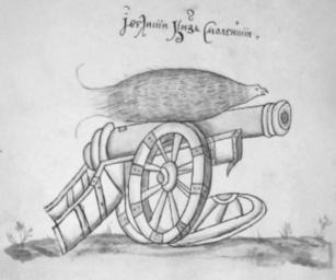 | Keywords: Coat of arms of Smolensk Principality (XVIII c.).png ru Ге б титульного Великого княжества Смоленского ачало XVIII века Тата ников К В П ил 2 «Ге бовник ста ый малеванный без к асок по титулу» // http //www milhist info/2012/04/22/tatarnikov/ Знамена и ге бы полков Российской а мии ца ствований Екате ины I и Пет а II 1725 1730 // Исто ия военного дела исследования и источники 2012 Т I С 170 Рис 8 ISSN 2308-4286 XVIII c author PD-Old-100 PD-RU-exempt Symbols of Smolensk with gamayun and cannon |