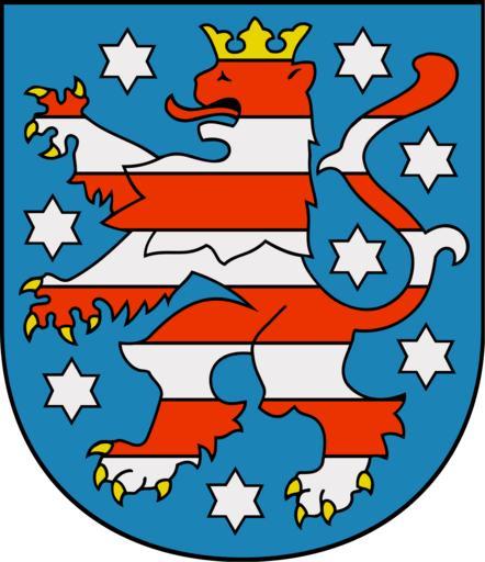 Keywords: coat of arms thuringia emblem badge german symbol insignia red white blue crown lion seal stars
