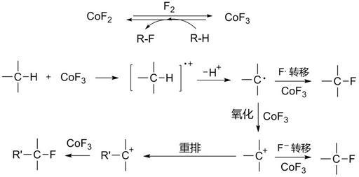 Keywords: Cobalt(III) Fluoride.png en Fluorination of organic compounds using CoF<sub>3</sub> as fluorinating agent<br />Reference Modern Fluoroorganic Chemistry - Synthesis Reactivity Applications P Kirsch Own Puppy8800 2008-07-23 Organofluorides