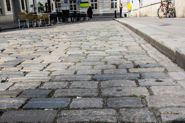 Keywords: cobblestones paving stones pedestrian zone road vienna old town old historically
