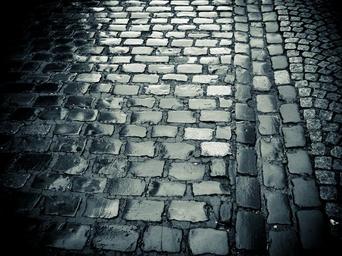 Keywords: cobblestones road paving stones old town pavement ground stones rain wet