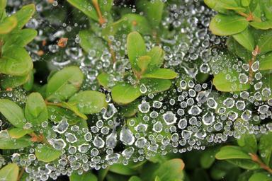 Keywords: cobweb green leaves dew dewdrop drop of water