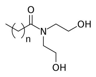 Keywords: Cocamide DEA.svg Chemical structure of cocamide DEA cocamide diethanolamine where n is 6 8 10 12 14 16 Own 12 10 5 September 2016 UTC Ed Edgar181 Fatty acid amides Surfactants