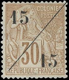 | Keywords: Cochinchine1888scott5.jpg Postage stamp of Cochinchine French Indochine 1888 scott 5 15c+15c overprinted on 30c Prepared but not issued Почтовая ма ка Кохинхины Ф анцузский Индокитай 1888 год scott 5 надпечатка 15+15 сантимов на 30 сантимах Подготовлена но не выпущена own 2011-10-08 uploaded by User Nickpo PD-old Cochinchina 1888 stamps Stamps of Indochina Females on stamps Overprints Bisects and splits Alphée Dubois | ||||