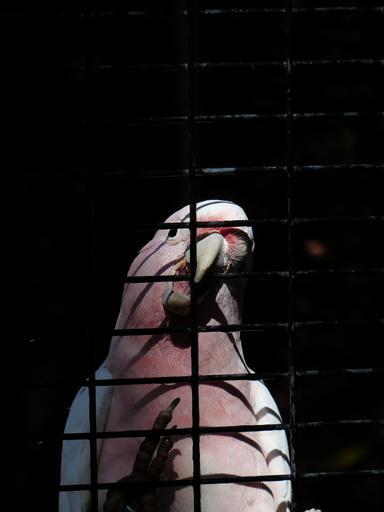 Keywords: cockatoo bird pink captivity cage grid inca kakadu cacatua leadbeateri bill bite open freedom