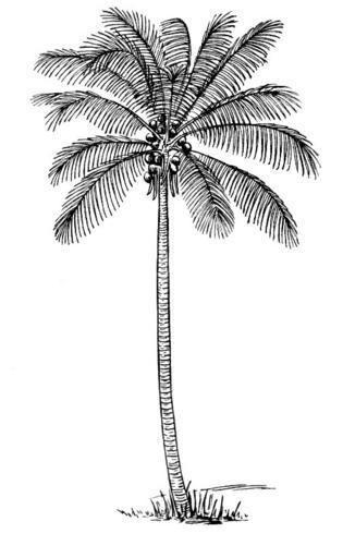 Keywords: Coco (PSF).jpg Line art drawing of a Coconut palm Piirustus kookospalmusta Cocos nucifera