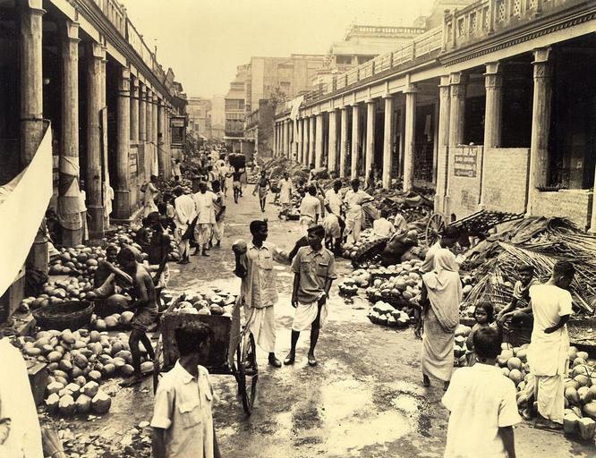 | Keywords: Coconut market on Cornwallis Street, Calcutta in 1945.jpg This cocoanut market on Cornwallis stret is a sample of the haphazard way in which many basars are opperated The popular pauses for refresment is indulged by Indian in central foreground drinking cocoanut milk The South Asia Section of the Van Pelt Library University of Pennsylvania recently acquired from a bookdealer a photograph album consisting of 60 photographs of Calcutta taken most likely between 1945-1946 The photographer Mr Clyde Waddell also provided the interesting glosses accompanying each photograph Several attested copies of this work has emerged including one with a 'title page' held by the Southeastern Louisiana University in Hammond Louisiana Mr Waddell was a military photographer Many of his captions sound like annotations that would be found in a typical military magazine The album begins with several general long shots of Calcutta and ends with a picture of dhobi-s washermen washing clothes The text accompanying the last photograph also sounds as if the author intended to finish with that picture of one of the great mysteries of India The annotations have been included because of their intrinsic interest not only to the photographs but to a 'typical' American impression of India at this time 1945 http //www library upenn edu/collections/sasia/calcutta1947/ Clyde Waddell other versions PD-USGov Van Pelt Library University of Pennsylvania - Clyde Waddell Calcutta 1940's photos Uploaded with UploadWizard Coconuts in India Coconut vendors |