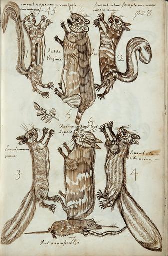 Keywords: Codex canadensis, p. 28.jpg fr Codex canadensis p 28<br> 1 ecureul suisse nomme dans le pais / oua ouingout <br>2 Ecureul volant sans pleume nomme / anascantaoue <br>3 Ecureul commun / jaune <br>4 Ecureul a la / Robe noire <br>5 Rat de La Virginie <br>6 Rat comun dans tout Le pais <br>7 Rat au museau Egu en 1 Swiss squirrel chipmunk called oua oningout in the country <br>2 Featherless flying squirrel named anascantaoue <br>3 Common yellow squirrel <br>4 Black-haired squirrel <br>5 Virginia rat <br>6 Rat common in the whole country <br>7 Sharp-nosed rat ca 1675-82 http //www collectionscanada gc ca/codex/026014-1100-f html Louis Nicolas 1634 - ca 1682 other versions PD-old-100 Codex canadensis Uploaded with UploadWizard |