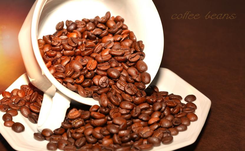 Keywords: coffee beans coffee roasted aroma caffeine cup saucer lighting