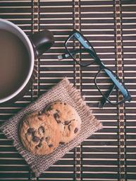Keywords: coffee chocolate chip cookies eyeglasses cup mug snack food dessert