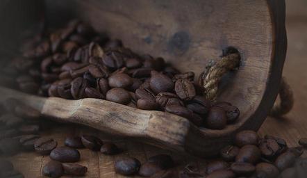 Keywords: coffee coffee beans natural product roasted brown wooden shovel caffeine close