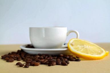 Keywords: coffee cup coffee cup drink caffeine cup of coffee beverage cafe hot break white aroma brown coffee beans lemon slice