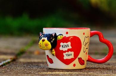 Keywords: coffee cup funny cat heart love kiss teacup cup drink enjoy coffee tee benefit from break hot drink tea time