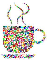 Keywords: coffee cup steam hot beverage drink refreshment circles dots colorful prismatic chromatic rainbow geometric abstract art