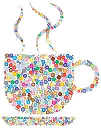Keywords: coffee cup steam hot beverage drink refreshment circles dots colorful prismatic chromatic rainbow geometric abstract art