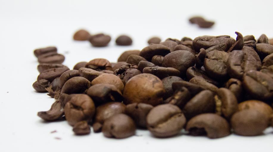 Keywords: coffee grains coffee beans brown time for coffee the drink caffeine white background biel macro closeup boost morning white