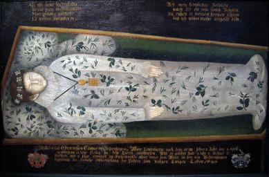 | Keywords: Coffin portrait 1603.jpg Artwork 1603 Oil on canvas Bad Freienwalde Germany own McLeod self-made Museum für Sepulkralkultur Kassel 2008-01 Reproduction of a painting that is in the public domain because of its age other versions PD-old-100 DEFAULTSORT 1603; Caspar of Uchtenhagen 17th-century unidentified painters Museum für Sepulkralkultur Kassel 1603 paintings in Germany 17th-century oil portraits of boys at full length 17th-century portrait paintings in Germany Death portraits 1600s portrait paintings |