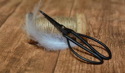 Keywords: coil wooden reel yarn scissors old scissors fields white feather wood floor close