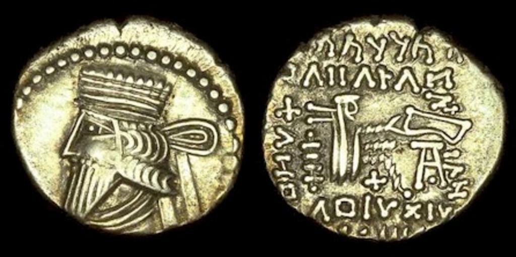| Keywords: Coin of Mithridates IV of Parthia.jpg Coin of Mithridates IV of Parthia Reverse shows a seated archer holding a bow surrounded by meaningless Greek-like letterforms and a line of Aramaic at top 2005-04-03 http //www parthia com/coins/si_mith4 jpg <br>Transferred from http //en wikipedia org en wikipedia by SreeBot Gdr at en wikipedia other versions PD-old PD-old-100 Original upload log page en wikipedia Coin_of_Mithridates_IV_of_Parthia jpg Upload date User Bytes Dimensions Comment 2005-04-03 13 03 UTC Gdr 43805 bytes 446×222 <small><nowiki>Coin of Mithridates IV of Parthia Reverse shows a seated archer holding a bow surrounded by meaningless Greek-like letterforms and a line of Aramaic at top money From http //www parthia com/coins/si_mith4 jpg</nowiki></small> Mithridates IV of Parthia Bows on coins |