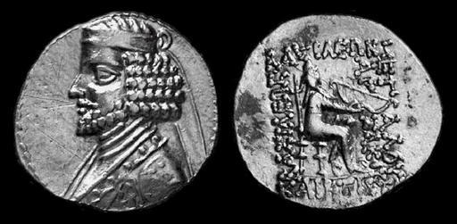 | Keywords: Coin of Orodes II of Parthia.jpg Coin of Orodes II of Parthia from the mint at Seleucia on the Tigris The reverse shows a seated archer with a bow The Greek inscription reads ΒΑΣΙΛΕΩΣ ΒΑΣΙΛΕΩΠΑΡΣΑΚΟΥ ΠΕΓΑΛΟΥ ΚΑΙ ΚΤΙΣΤΟΥ king of kings great Arsaces and founder 2005-04-02 Downloaded from http //www parthia com/coins/pdc_4759 jpg <br>Transferred from http //en wikipedia org en wikipedia by SreeBot Gdr at en wikipedia other versions PD-old PD-old-100 Original upload log page en wikipedia Coin_of_Orodes_II_of_Parthia jpg Upload date User Bytes Dimensions Comment 2005-04-02 21 51 UTC Gdr 77560 bytes 657×322 <small><nowiki>Coin of Orodes II of Parthia from the mint at Seleucia The reverse shows a seated archer with a bow The Greek inscription reads ΒΑΣΙΛΕΩΣ ΒΑΣΙΛΕΩΠAlp</nowiki></small> Coins of Parthia Kings on coins Coins on black background Bows on coins Orodes II Both sides of coins |
