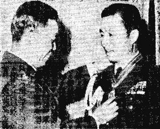 | Keywords: Col. Ock Man-ho received medal from the ROC Government for promoting military cooperation.png zh-tw 中華民 參 總長彭孟 上將代表總統頒授大韓民 駐華空軍武官玉滿鎬上校領授雲麾勛章 座,以酬庸其 駐華武官任內致力增 中韓兩 間之軍事合 與促 中韓兩 之三軍間傳統友誼之貢獻 en Gen Peng Meng-chi left Chief of the Republic of China's General Staff presented Col Ock Man-ho Air Attaché of the Republic of Korea to Taipei with an Order of the Cloud and Banner with Cravat on behalf of the President Ock received this Order for his contribution in enhancing Sino-Korean military cooperation and promoting traditional interservice friendship between the two countries during his term of office ko 주 중화민국 만 민국 사 공군무 옥만호 령 중화민국 정 령수운 훈장 받는다 1963-02-21 zh-tw 報訊(1963年2 22日) 韓武官玉滿鎬 促 軍事合 我政 昨贈勛 中央日報,第3版 en 韓武官玉滿鎬 促 軍事合 我政 昨贈勛 Korean military attaché Ock Man-ho received governmental medal yesterday for promoting military cooperation 1963 February 22 Central Daily News Taipei p A3 郭琴舫 other versions Custom license marker 2015 12 02 PD-ROC-oldphoto 1963 in Taiwan Military attachés to Taiwan Military attachés from South Korea Republic of Korea Air Force Officers Relations of South Korea and Taiwan Uploaded with UploadWizard |