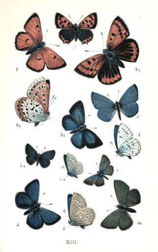 | Keywords: Colemans British Butterflies Plate XIII.png Plate XIII from W S Coleman's British Butterflies 1860 1 Small Copper 2 Large Copper 2 a female 3 Holly or Azure Blue 3 a female 4 Bedford Blue 4 a female modern Small Blue 5 Mazarine Blue 5 a female 2010-10-11 Keith Edkins W S Coleman's British Butterflies PD-old Coleman's British Butterflies Files from Project Gutenberg Lycaena phlaeas Lycaena dispar illustrations Celastrina argiolus Cupido minimus Polyommatus semiargus | ||||