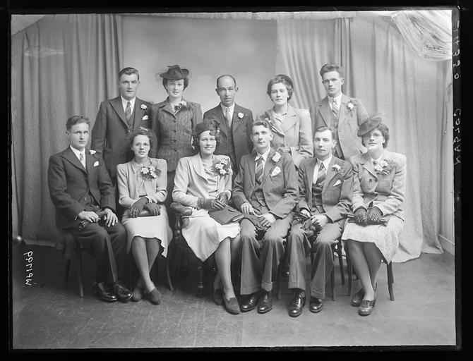 | Keywords: colgan proni allison allison & co. photographers allisoncophotographers wedding wedding portrait weddingportrait genealogy ancestry ulster armagh northern ireland northernireland monochrome people groupshot blackandwhite photo border sport team sport black and white Creator: H. Allison & Co. Photographers Date: 31st August 1943 Original Format: Glass Plate Negative, 9.5 X 7.5 inches Description: Colgan family of Charlemont, Moy, County Tyrone - Wedding Portrait PRONI Ref: D2886/W/Wedding/599 Copying and copyright: Please see www.proni.gov.uk/index/research_and_records_held/copying_... For Copy Orders, contact: Email: proni@dcalni.gov.uk For fees and charges see: www.proni.gov.uk/index/about_proni/are_there_any_fees_and... Creator: H. Allison & Co. Photographers Date: 31st August 1943 Original Format: Glass Plate Negative, 9.5 X 7.5 inches Description: Colgan family of Charlemont, Moy, County Tyrone - Wedding Portrait PRONI Ref: D2886/W/Wedding/599 Copying and copyright: Please see www.proni.gov.uk/index/research_and_records_held/copying_... For Copy Orders, contact: Email: proni@dcalni.gov.uk For fees and charges see: www.proni.gov.uk/index/about_proni/are_there_any_fees_and... |