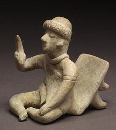 | Keywords: Colima - Group of Figurines and Architectural Model - Walters 20092033 - Three Quarter Front (2) (3).jpg Narrative groupings of figurines in architectural settings have been found throughout Mesoamerica in contexts dating as early as the Middle Formative Period 900-400 BCE Some are made from jadeite and similar precious stones such as an Olmec ceremonial scene of sixteen figurines arranged in a semicircle and framed by six column-like celts Others are composed of modeled ceramic figures depicting a burial or ancestor veneration rite complete with elaborately dressed performers and musicians like that found above Tomb 103 at Monte Albán Oaxaca The objects that constitute these figure groups generally share the same aesthetic style and manufacturing technique which suggests they were made at the same time as a single artistic statement The disparate artistic styles and technical features suggest that these nine Colima figurines and one building model might be a modern grouping although dissimilar figurines have been documented in figure groupings found in the same tomb In this instance archaeological confirmation is not available The figurine types represent at least two styles from Colima-Jalisco including the Tuxcacuesco-Ortices type nos 33 3 33 8 and 33 9 and two from the Colima-Jalisco border region nos 33 4 and 33 5 The house model no 33 1 depicts a typical West Mexican domicile or ceremonial building without its basal earthen platform No architecture of comparable form is found in the region because these structures were made of perishable materials; only the earth-and-stone platforms have survived although many have been destroyed by modern agricultural activities These architectural models thus document the lost architectural heritage of ancient West Mexico The figures portray men and women performing both ritual and daily activities from mothers tending children nos 33 3 and 33 8 and grinding maize no 33 7 to men drumming no 33 6 or sitting regally and brandishing a fanlike scepter no 33 9 A seated hunchback figure which also is a whistle sports an elaborate head wrap and fine jewelry no 33 10 A dog-standing-atop-a-dog sculpture and two seated men with elongated heads complete the group nos 33 2 33 4 and 33 5 This elongated-head figurine style is associated with the northern Colima-Jalisco region and dates to the later years of the Comala phase ca 200-300 CE 200 BC-AD 400 earthenware 1 cm 16 9 13 1 13 7 ; 2 H 3 3/4 x L 3 13/16 x W 2 1/16 in 9 5 x 9 7 x 5 3 cm ; 3 cm 10 3 7 7 4 8 ; 4 cm 7 1 4 1 2 3 ; 5 cm 7 3 4 7 2 3 ; 6 cm 9 1 6 2 6 3 ; 7 cm 14 6 7 8 12 7 ; 8 cm 12 1 8 4 5 5 ; 9 cm 8 9 6 9 10 1 ; 10 cm 7 5 1 5 2 accession number 2009 20 33 80188 John G Bourne date and mode of acquisition unknown Walters Art Museum Gift of John Bourne 2009 place of origin Colima Mexico <gallery> File Colima - Group of Figurines and Architectural Model - Walters 20092033 - Three Quarter Front jpg File Colima - Group of Figurines and Architectural Model - Walters 20092033 - Three Quarter Front 2 jpg </gallery> Walters Art Museum license Objects from Colima in the Walters Art Museum Media contributed by the Walters Art Museum needs category review |