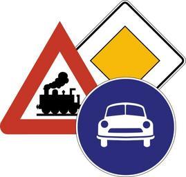 | Keywords: Collage historischer und aktueller Verkehrszeichen.svg E - Unbeschrankter Bahnübergang Bild 17c - Kraftfahrstraße Zeichen 306 - Vorfahrtsstraße own Mediatus 2014-04-27 Cc-zero Diagrams of road signs of Germany Regulatory road signs in Germany Diagrams of historic road signs of Germany |