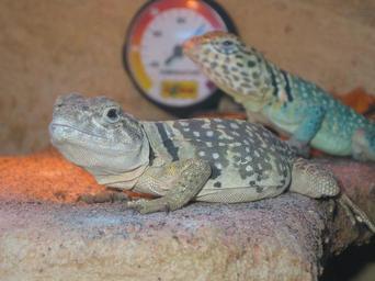 Keywords: Collared-lizards.jpg Koreth This is a pair of Crotaphytus collaris collared lizards a female in the foreground and a male with aquaflame coloration in the background I took this photo on March 12 2004 Crotaphytus collaris