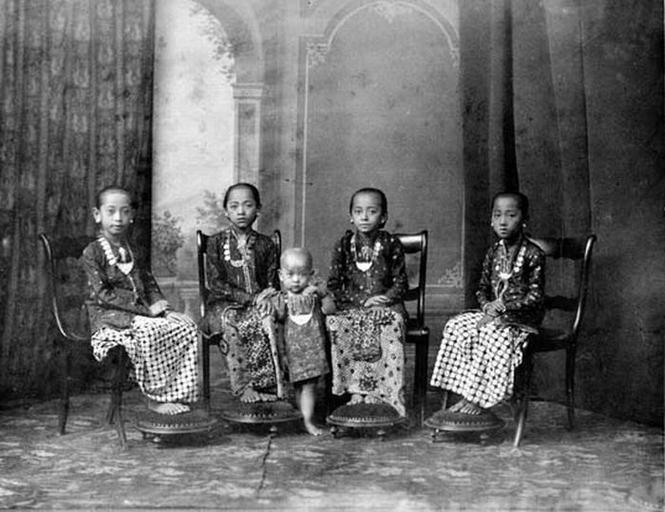 | Keywords: COLLECTIE TROPENMUSEUM Kinderen aan het hof van de kraton van Yogjakarta. Ze dragen kain panjangs met verschillende patronen waaronder het kawungmotief het parang rusak motief en udan liris motief. Java ca. 1875 TMnr 60001465.jpg nl Foto Kinderen aan het hof van de kraton van Yogjakarta Ze dragen kain panjangs met verschillende patronen waaronder het kawungmotief het parang rusak motief en udan liris motief Java ca 1875 ca 1875 institution Tropenmuseum KIT-source 60001465 Creator Kassian Cephas KIT-license PD-old-100 Images from KIT Voorstelling Object - portretten Images from KIT Voorstelling/iconografie - jasjes Images from KIT Voorstelling Object - beendoeken Jewellery of Indonesia Images from KIT Voorstelling Object - voetenbankjes Photographs by Kassian Cephas Kraton of Yogyakarta Black and white photographs |