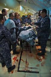 | Keywords: Collective protection exercise 130514-N-EI510-058.jpg en Sailors provide emergency care to a multiple amputation trauma trainer during the collective protection exercise held on Naval Weapons Station Yorktown-Cheatham Annex The collective protection exercise provides a collective protection to the warfighter and their equipment utilizing state-of-the-art chemical biological and radiological protective technologies U S Navy photo by Mass Communication Specialist Scott Barnes/Released 2013-05-14 Seaman Scott Barnes https //www dvidshub net/image/933793 130514-N-EI510-058 2013-05-16 23 57 NAVAL WEAPONS STATION YORKTOWN-CHEATHAM ANNEX VA US PD-USGov-Military-Navy Naval Weapons Station Yorktown Images from DoD uploaded by Fæ |