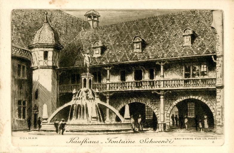 | Keywords: Colmar n° 2 Kaufhaus - Fontaine Schwendi.jpg fr Colmar Kaufhaus Fontaine Schwendi - eau-forte de Charles Pinet série Colmar n° 2 unknown postcard Charles Pinet 48 4 33 15 N 7 21 35 E region FR_heading W PD-Art Uploaded with UploadWizard Postcards of Colmar by Charles Pinet 02 Fontaine Schwendi Koifhus Historical images of Colmar Unidentified date |