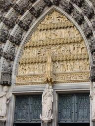 Keywords: cologne dom figures sculpture facade cologne cathedral places of interest tourist attraction church relief tympanon portal arch