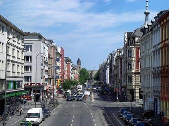 Keywords: cologne germany buildings architecture street traffic vehicles people skyline city cities urban sky clouds