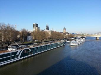 Keywords: cologne rhine panorama rhine promenade river rheinland germany passenger ship city page