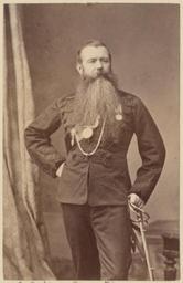 | Keywords: Colonel Mowbray Thomson WDL11453.png Artwork ru Полковник оуб ей Томсон fr Colonel Mowbray Thomson en Colonel Mowbray Thomson zh 莫布雷·汤姆森上校 pt Coronel Mowbray Thomson ar العقيد موبراي طومسون ru Эта фотог афия полковника оуб ея Томсона 1832 1917 гг входит в альбом едких исто ических фотоснимков на кото ых изоб ажены люди и места связанные со Вто ой англо-афганской войной Томсон был одним из четы ех человек выживших в езне кото ой подве гся б итанский га низон в Канпу е во в емя Индийского восстания 1857 года Оп авившись после полученных анений он написал 260-ст аничный ассказ об этом событии под названием Повесть о Канпу е <em></em> Этот ассказ Томсон в то в емя бывший в звании капитана посвятил х аб ым мужчинам те пеливым женщинам и беспомощным невинным детям Англии погибшим в езультате осады га низона Имеющаяся в наличии инфо мация не позволяет с достове ностью установить степень участия Томсона в англо-афганской войне Вто ая англо-афганская война началась в нояб е 1878 года когда Великоб итания опасаясь как ей казалось астущего влияния России в Афганистане вто глась в эту ст ану с те ито ии Б итанской Индии Пе вый этап войны закончился в мае 1879 года подписанием Гандамакского догово а позволившего афганцам сох анить внут енний суве енитет однако заставившего их уступить конт оль над внешней политикой своей ст аны б итанцам Военные действия возобновились в сентяб е 1879 года после антиб итанского восстания в Кабуле и окончательно заве шились в сентяб е 1880 года ешающей битвой за Кандага Данный альбом включает по т еты б итанских и афганских лиде ов и военнослужащих фотог афии п остых афганских людей изоб ажения б итанских военных лаге ей военных действий ст оений пейзажей к упных и небольших го одов Все изоб аженные на фотоснимках места находятся на те ито ии сов еменных Афганистана или Пакистана в то в емя бывших частью Б итанской Индии Около т ети п едставленных в альбоме фотог афий выполнены Джоном Бе ком около 1843 1900 гг д угая т еть сэ ом Бенджамином Симпсоном 1831 1923 гг а оставшаяся часть несколькими д угими фотог афами Авто ы некото ых фотоснимков неизвестны Возможно что составителем альбома был один из членов б итанского п авительства в Индии однако это п едположение не подтве ждено Каким об азом альбом попал в Библиотеку Конг есса неизвестно <br>Афганские войны; едали; Офице ы; Военная фо ма; По т етные фотог афии; По т еты; Томсон оуб ей 1832 1917 гг fr Ce cliché du colonel Mowbray Thomson 1832-1917 est extrait d'un album de photographies historiques rares de personnalités et de sites associés à la seconde guerre anglo-afghane Thomson fut l'un des quatre survivants du massacre d'une garnison britannique à Cawnpore aujourd'hui Kanpur pendant la révolte indienne de 1857 Une fois remis de ses blessures il écrivit un récit de 260 pages du massacre intitulé <em>L'histoire de Cawnpore</em> Thomson alors capitaine le dédia « aux braves aux femmes patientes et aux innocents sans défense d'Angleterre » qui périrent lors du siège Les informations disponibles aujourd'hui ne permettent pas de mesurer l'ampleur de la participation de Thomson à la guerre anglo-afghane La seconde guerre anglo-afghane commença en novembre 1878 lorsque la Grande-Bretagne se sentant menacée par l'influence croissante des Russes en Afghanistan envahit le pays depuis l'Inde britannique La première phase de la guerre s'acheva en 1879 avec le traité de Gandamak qui permit aux Afghans de conserver leur souveraineté nationale mais les força à céder le contrôle de leur politique étrangère aux Britanniques Les combats reprirent en septembre 1879 à la suite d'un soulèvement antibritannique à Kaboul et ils se conclurent finalement en septembre 1880 avec la bataille décisive de Kandahar L'album contient des portraits de dirigeants et de militaires britanniques et afghans mais également d'Afghans ordinaires ainsi que des représentations de camps et d'activités militaires britanniques de structures de paysages et de villes et de villages Les sites photographiés sont tous situés sur le territoire de l'actuel Afghanistan ou Pakistan une partie de l'Inde britannique à l'époque Près d'un tiers de