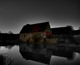 Keywords: color key black white home mirroring facade window architecture reflection atmosphere romance